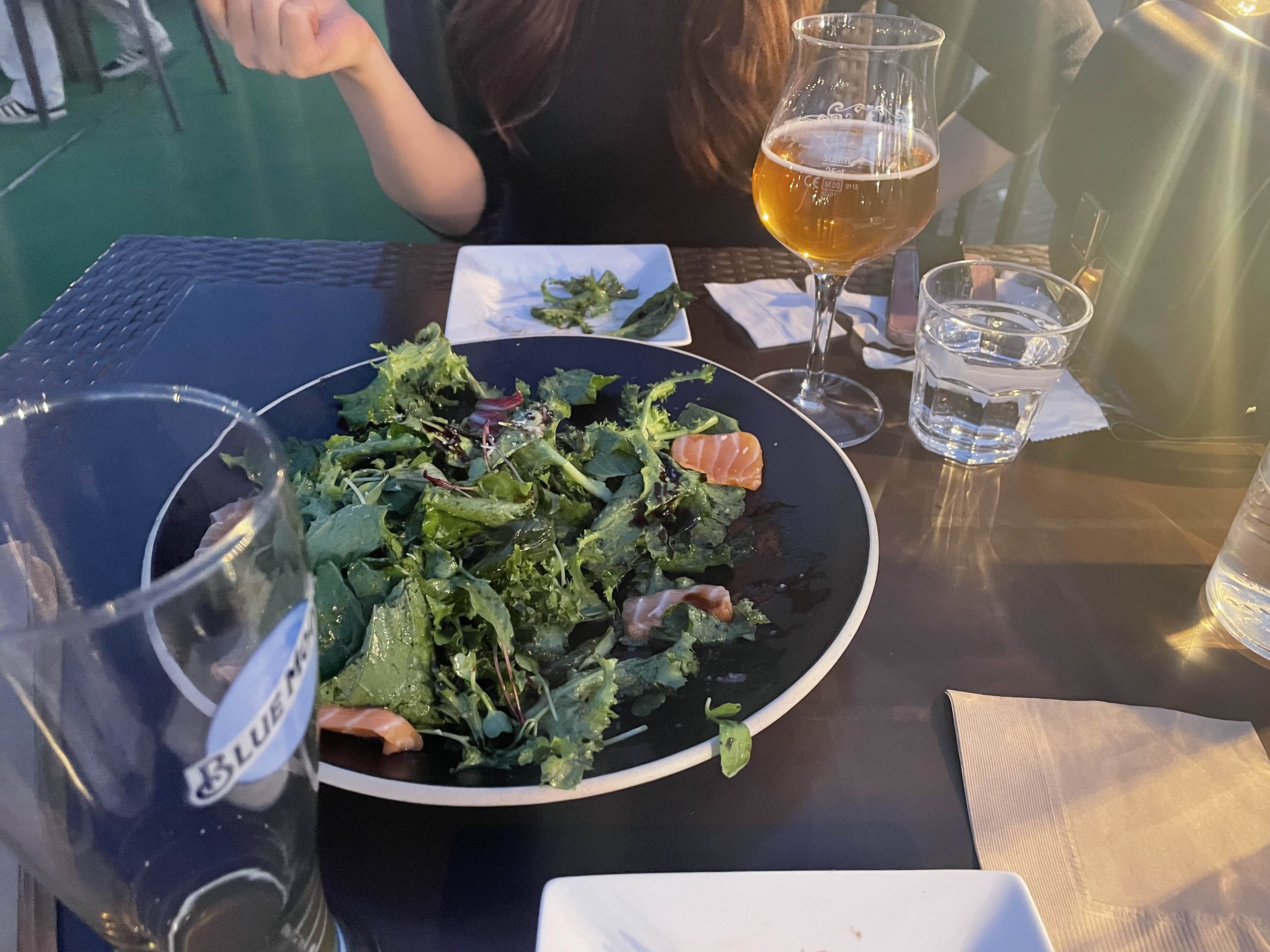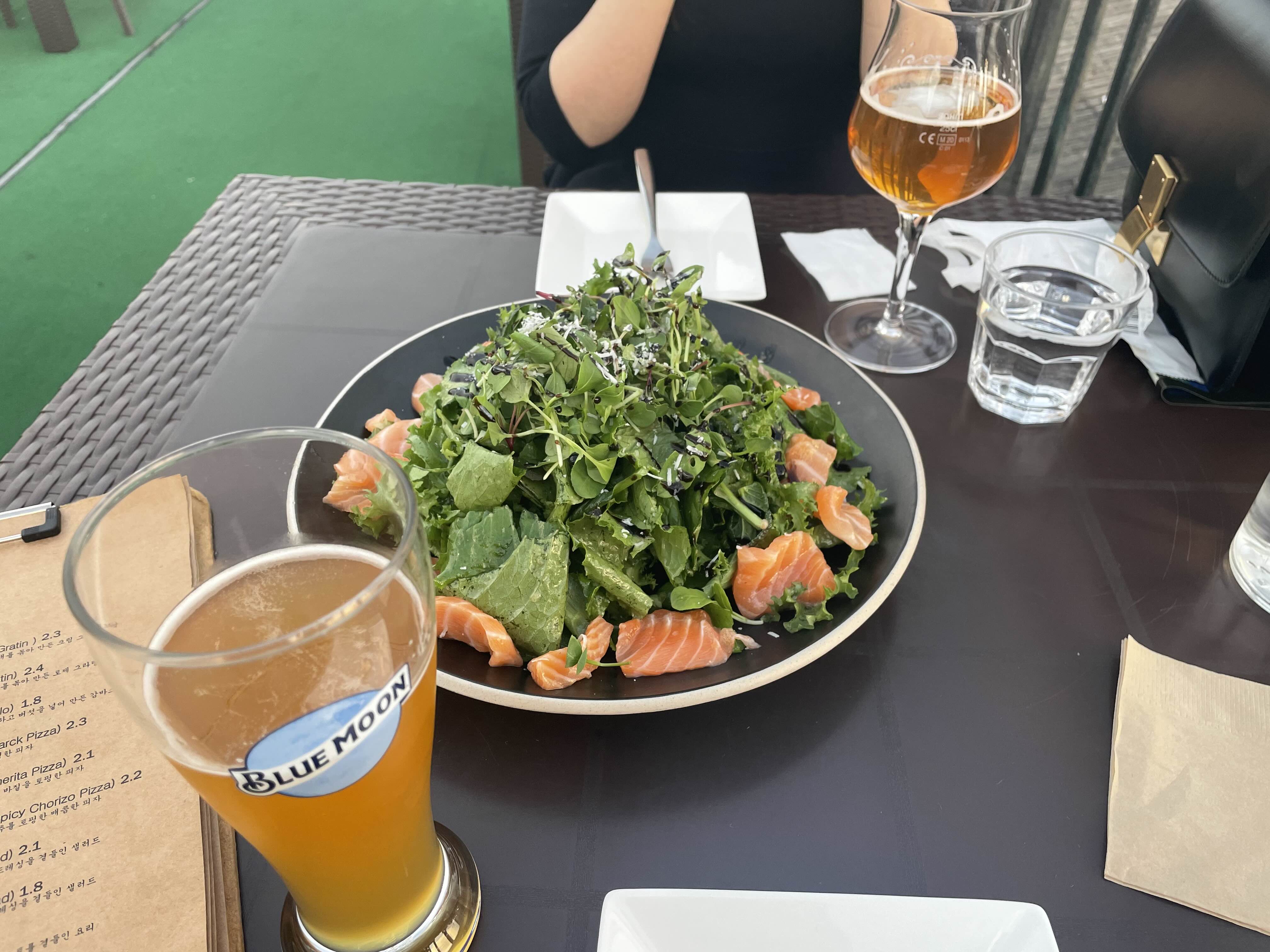 저희는 살몬샐러드와 맥주 두병을 주문했어요ㅎㅎㅎㅎㅎㅎㅎㅎㅎ논알콜도 있고 특이하게 논알콜 와인도 있더라구요????
